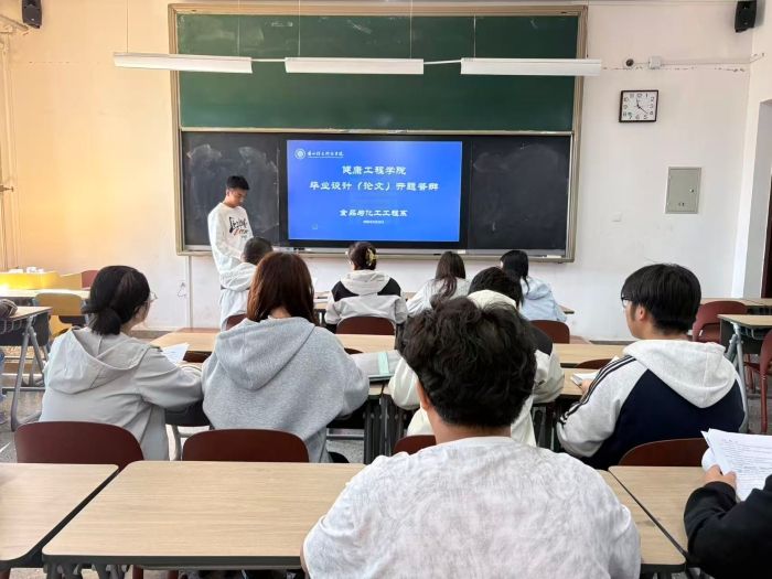 毕业论文(设计)是高校人才培养的关键环节,开题答辩更是确保毕业论文(设计)质量的 “第一道防线”。为扎实推进 2026届毕业生人才培养工作,明确设计方向、规范研究思路、提升学术质量,2025年9月22日至2025年10月10日,健康工程学院食品科学与工程、化学工程与工艺、制药工程、材料成型及控制工程、应用化学与金属材料工程专业组织开展 2026届毕业生毕业论文(设计)开题答辩工作,全体 2026届毕业生、答辩指导教师及专业负责人共同参与,为毕业生的毕业论文(设计)之路筑牢起步根基。