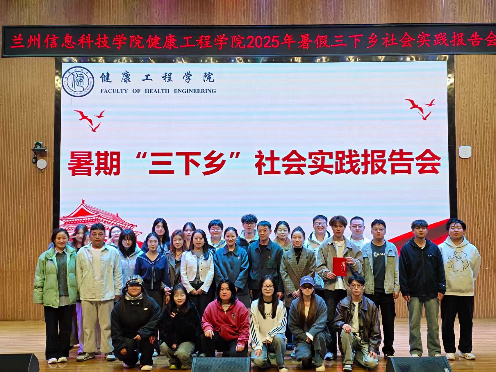 健康工程学院辅导员杜佳丽老师和柏静老师为实践团中荣获“优秀标兵”和“优秀个人”的成员颁发荣誉证书,健康工程学院学生发展中心副主任魏炜老师在致辞中鼓励全体学生以优秀团队为榜样,积极投身基层实践,在服务乡村发展中实现个人价值。报告会最后,全体嘉宾与实践队员合影留念,定格这段充满意义的实践记忆。
