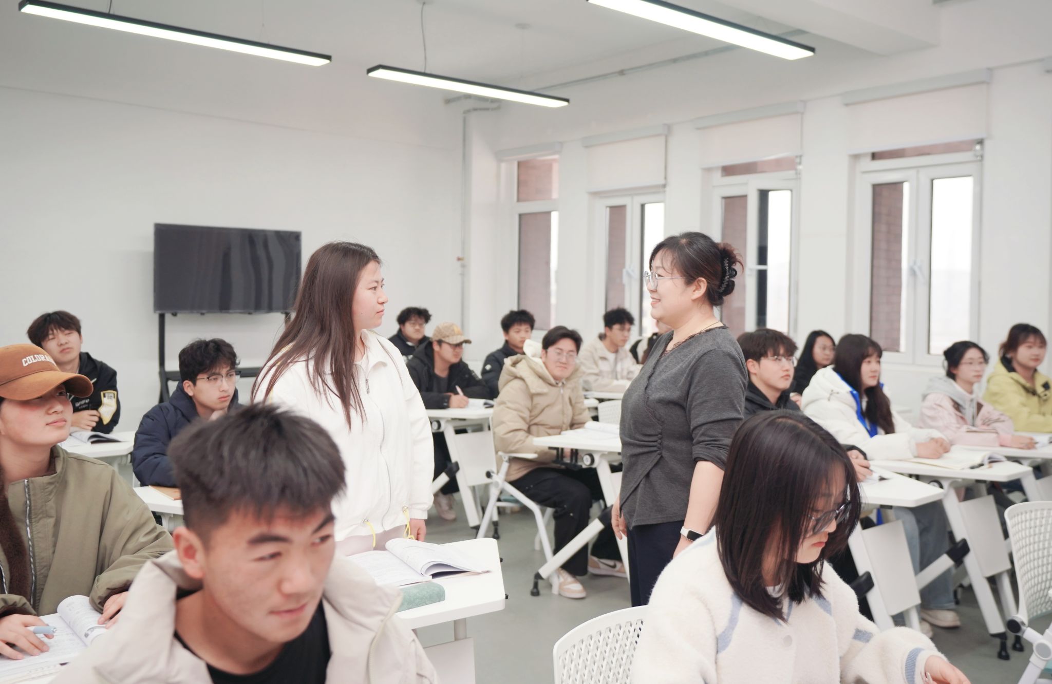 活动中,各任课教师结合课程内容,设计了多样化的课堂互动环节,包括课堂提问、小组讨论、案例分析、知识点抢答等,学生只要主动举手回答问题、积极参与小组展示、准确完成课堂练习,就能获得学院精心准备的小奖品——笔记本、签字笔、书签、定制钥匙扣等,虽价值不高,却承载着学院对学生主动学习、积极参与的肯定与鼓励。课堂上,原本沉默的氛围被打破,学生们主动抬头、认真倾听,举手回答问题的人数明显增多,小组讨论时各抒己见、氛围热烈,课堂互动积极性显著提升,“低头族”越来越少,课堂效率得到有效提高。