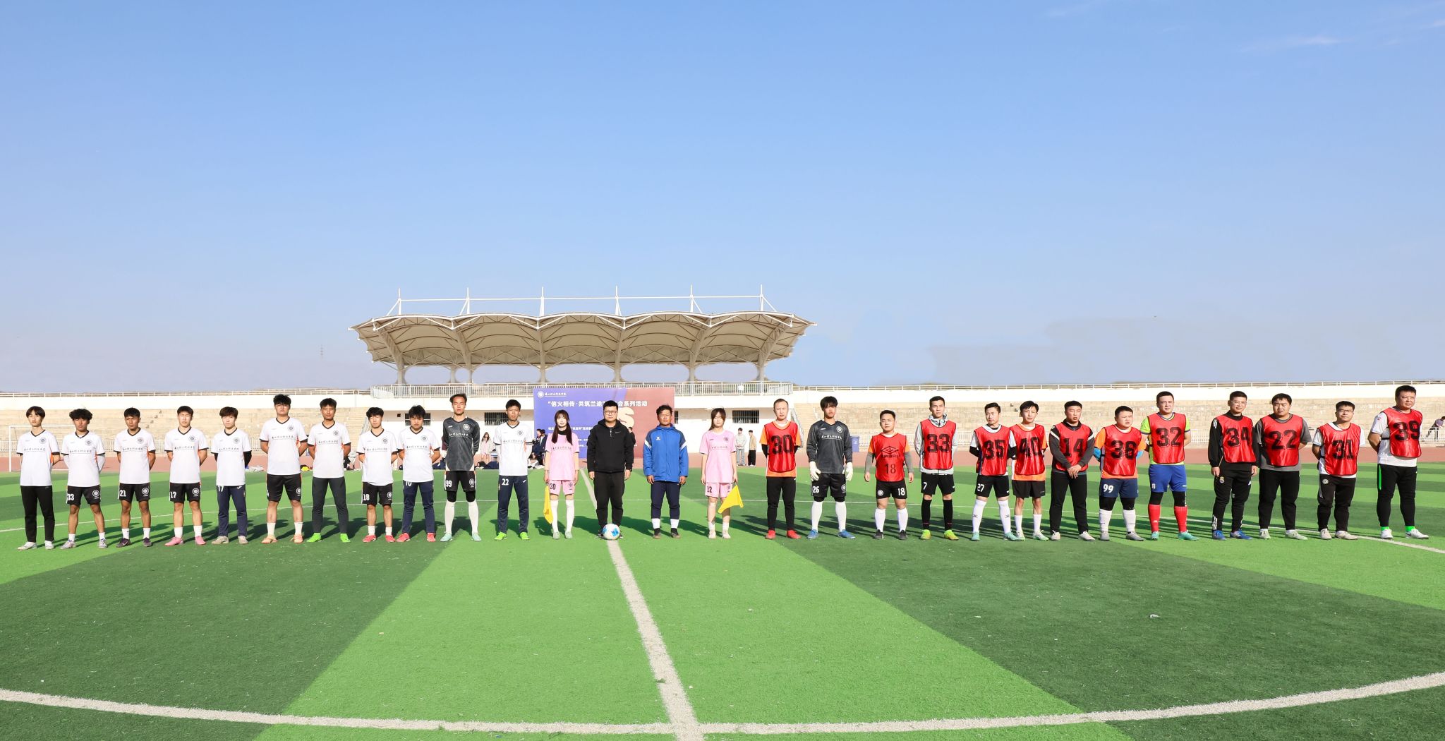 座谈会后,一场充满激情与温度的足球友谊赛点燃绿茵场。校友联队与校男女足球队同场挥洒汗水,激烈攻防中尽显拼搏风采,也映照出历久弥坚的情谊纽带。校长助理苏存兴为比赛开球,将整场活动推向高潮。